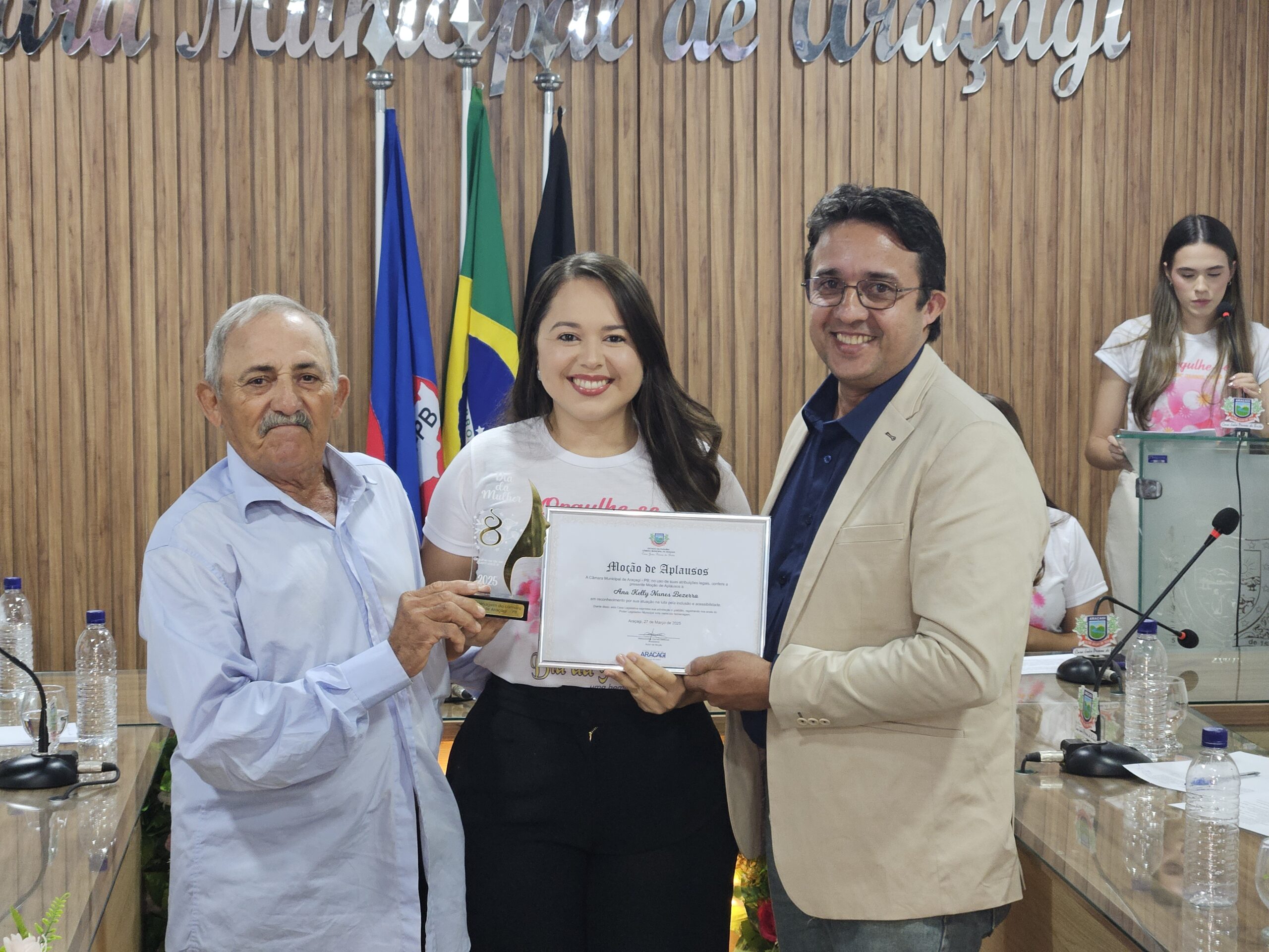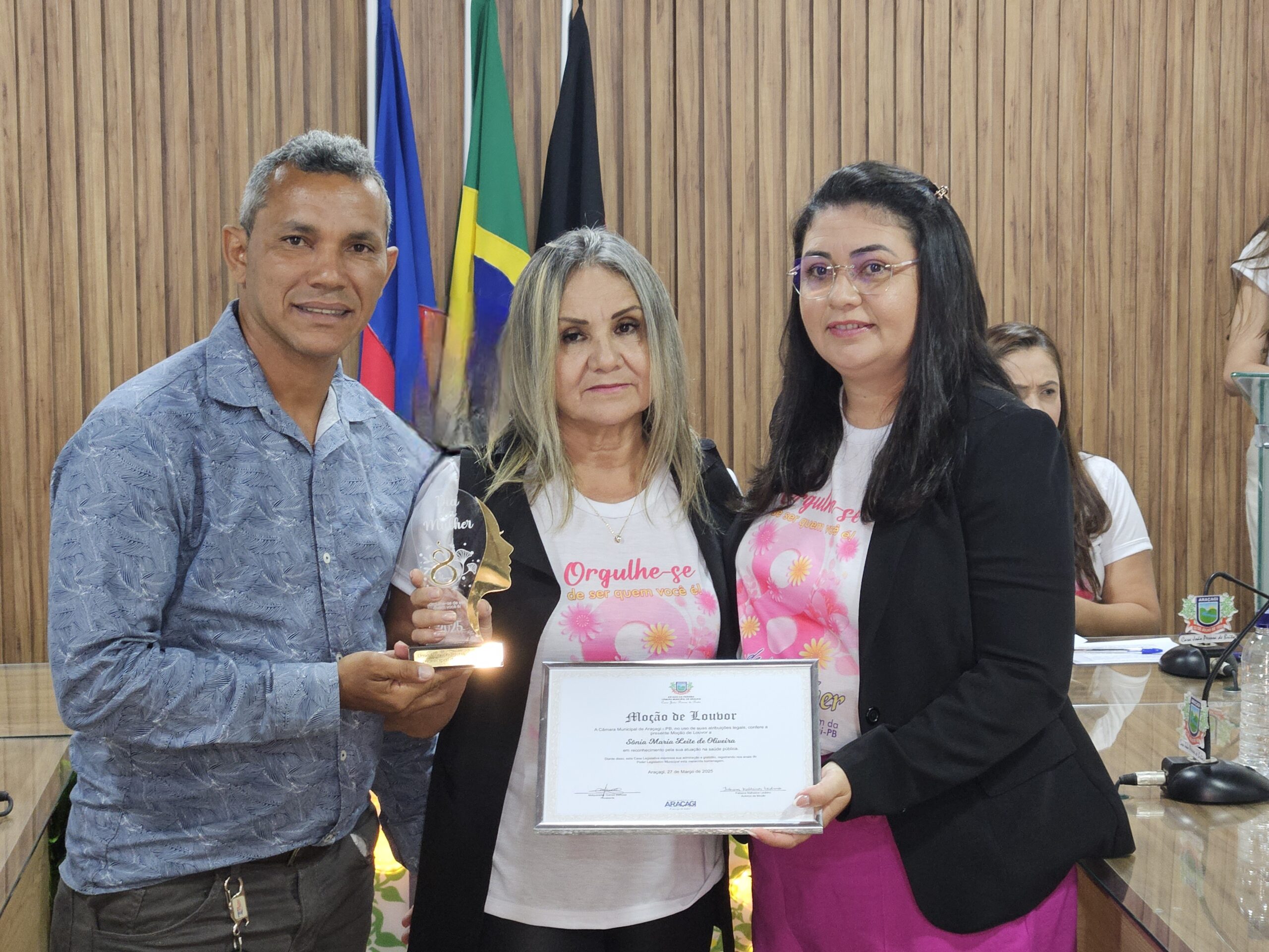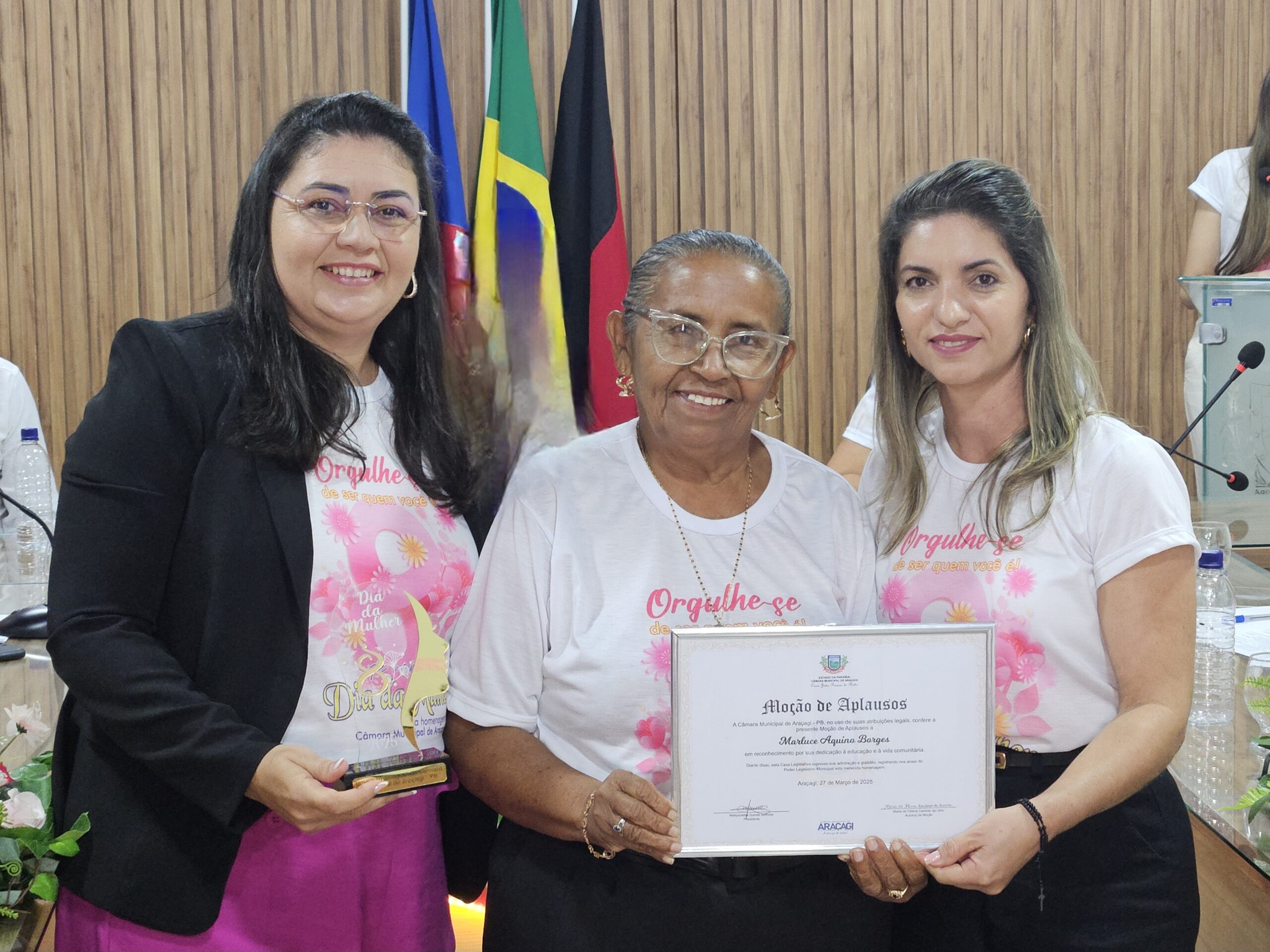 Diversas autoridades estiveram presentes, incluindo a Secretária de Ação Social, Danielly Pessoa, e representantes da assistência social e educação. Um dos momentos mais marcantes foi a entrega de honrarias a mulheres que se destacaram em diferentes setores. Entre as homenageadas estavam Janete Maria Israel da Costa Macedo (Título de Cidadã Honorária de Araçagi), Sônia Maria Leite de Oliveira (Moção de Louvor na saúde pública), Severina Gomes Barbosa (Moção de Louvor pela dedicação à família e educação), Ana Paula Régis da Silva (Moção de Aplausos na cultura e artesanato), Ana Kelly Nunes Bezerra (Moção de Aplausos na inclusão e acessibilidade), Maria Salustiano Duarte de Souza (Moção de Aplausos pelos 40 anos na educação), entre outras personalidades reconhecidas por suas contribuições à comunidade.